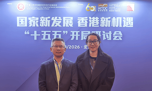 On 19 March 2026, the “New National Development, New Opportunities for Hong Kong – Opening Symposium of the 15th Five-Year Plan” was successfully held in Beijing. Jointly organised by the Hong Kong Trade Development Council and the Hong Kong Chamber of Commerce in China, the event attracted over 500 Hong Kong business leaders and enterprise representatives from across Mainland China. Dr Henry Yang, Co-founder of HSKC, and Ms Lynn Lin, Senior Operating Partner, attended the event on behalf of the company as members of the Hong Kong Chamber of Commerce in China. Together with participants from various sectors, they engaged in in-depth discussions on the strategic direction of the upcoming Five-Year Plan.